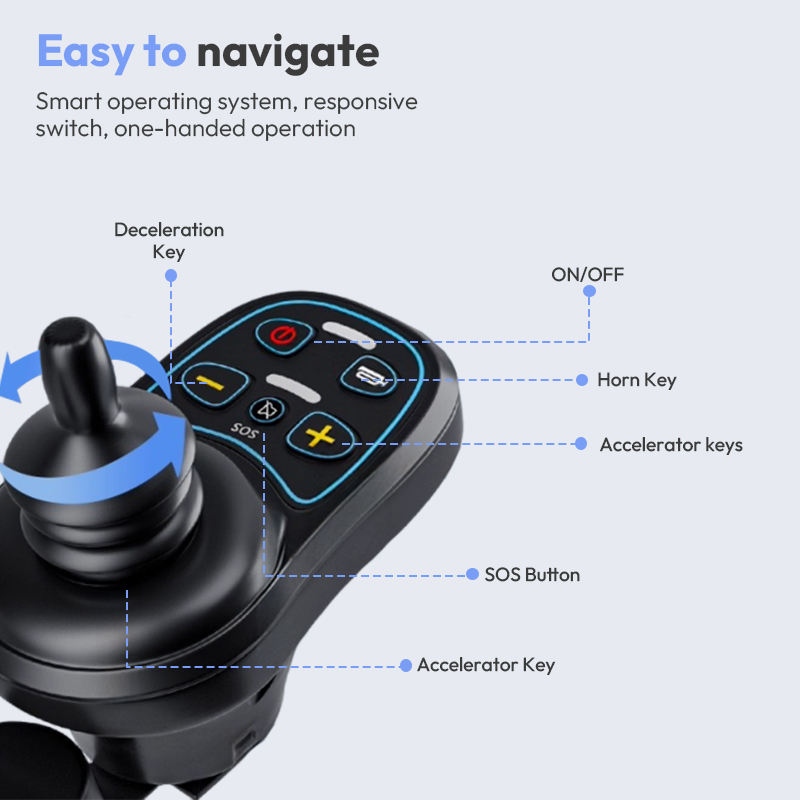 Brush Motors vs. Brushless:In this weight class, brush motors offer immediate torque. They are rugged and reliable, providing that snappy response when you push the joystick, ensuring you have an electric wheelchair for outdoor use that doesn’t lag.