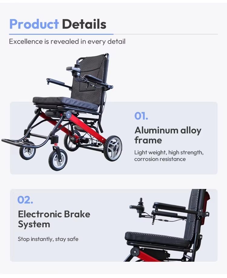 Whether you are a distributor looking for a travel friendly power chair to add to your electric wheelchair collection , or an individual tired of heavy steel frames, this unit offers the perfect blend of safety, portability, and performance. With its 13.5KG frame, electronic braking system, and compact power chair dimensions, it solves the “last mile” problem of travel mobility with elegance.