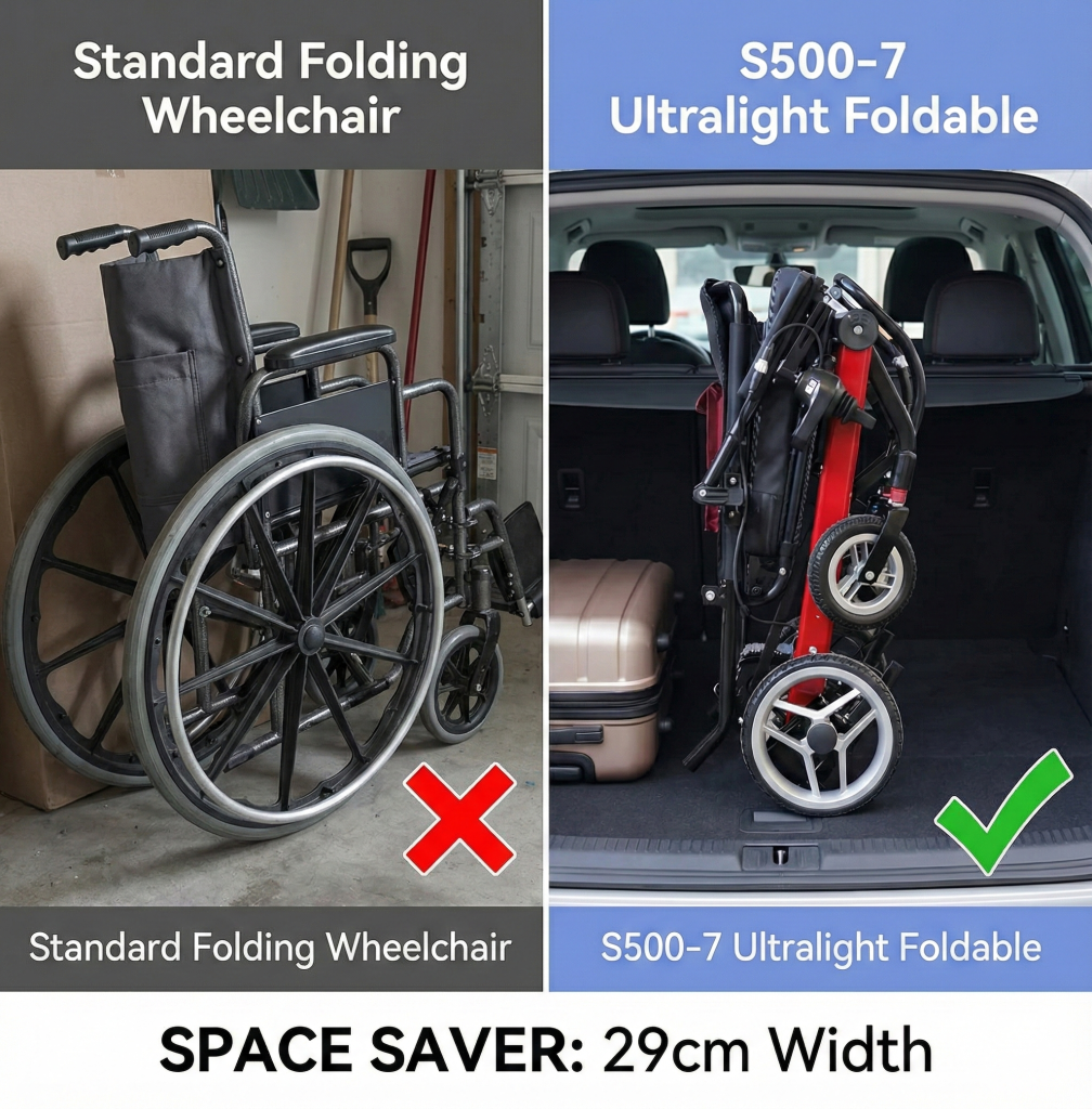 For countless individuals, the promise of freedom is often contradicted by the physical burden of their mobility equipment. The irony is palpable: a device meant to provide independence often requires a second person to lift, load, and assemble. Wrestling a clunky, 30kg steel apparatus into a car trunk isn’t just physically exhausting; it is a psychological barrier to spontaneous travel. The 500-7 Model shatters this limitation, redefining the engineering standards for what a travel chair can be.