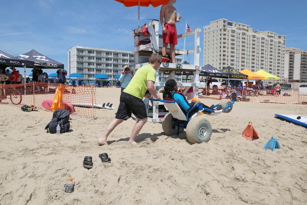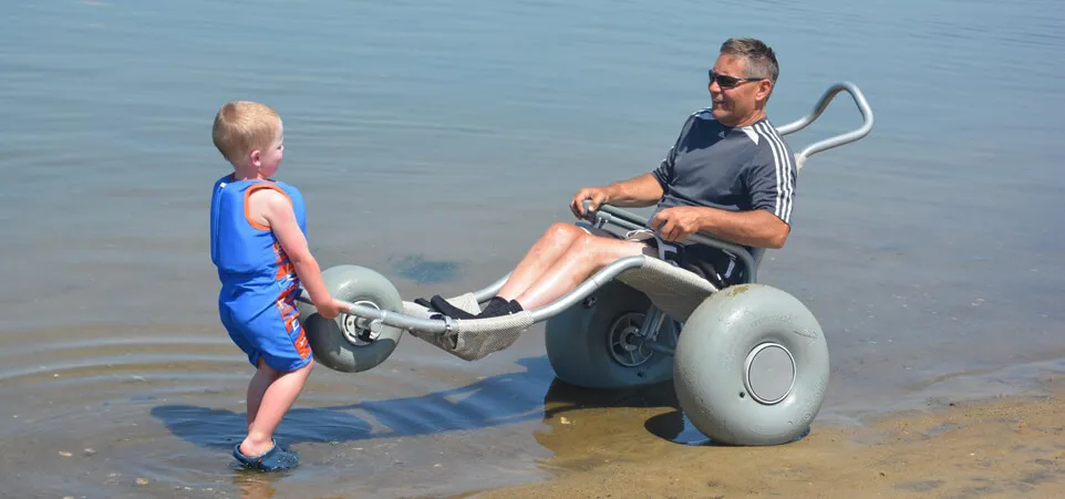 - Parking Brake: Stainless steel hub brake for secure stops, applied by the user or assistant. Ideal for sloped beaches or grassy hills.