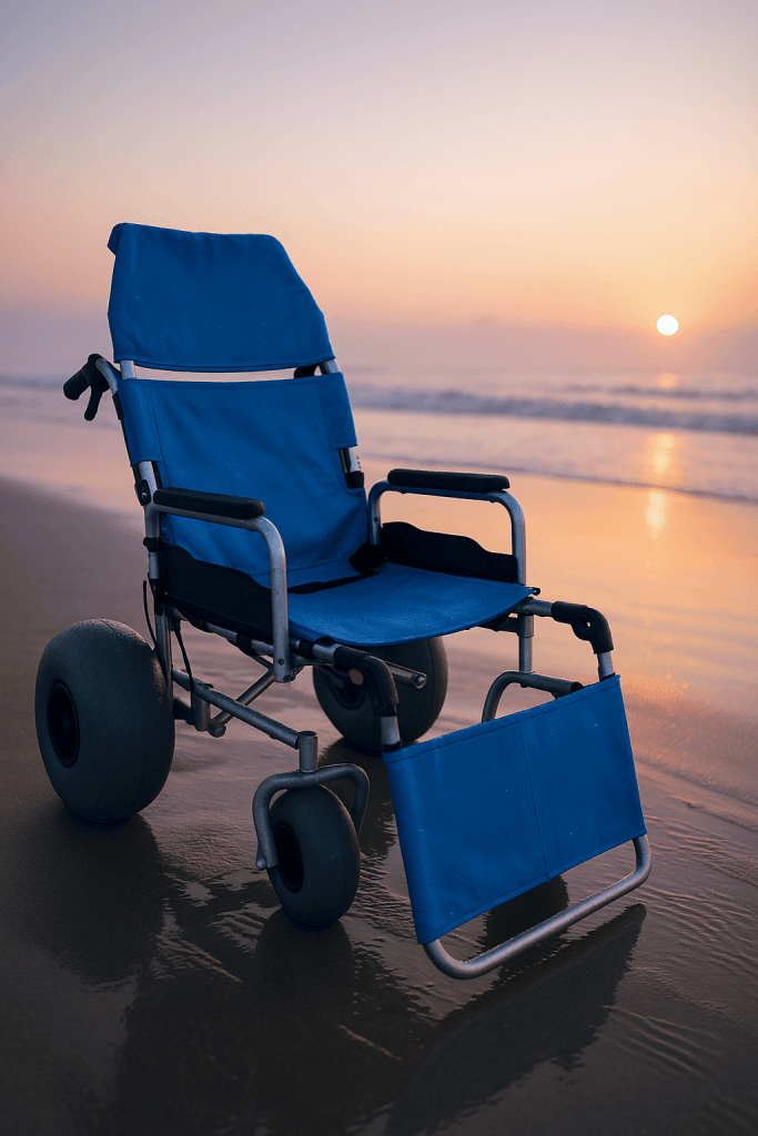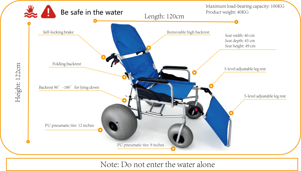 The Ary Medical All-Terrain Beach Wheelchair is engineered for both comfort and performance on sand, grass, gravel, and outdoor terrains. With its robust carbon steel frame, UV-resistant waterproof seat fabric, and ergonomic backrest, it provides maximum support for users requiring mobility assistance at beaches, resorts, and outdoor leisure areas.