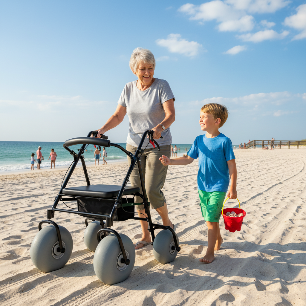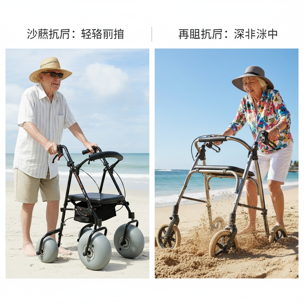 Standard walkers work wonders on smooth pavement or indoor floors. But sandy beaches? That’s a whole different story. The soft, shifting sand turns those trusty devices into anchors. Narrow wheels dig in like knives, demanding extra effort just to move a few feet. For seniors, this isn’t just inconvenient—it’s exhausting and risky.
