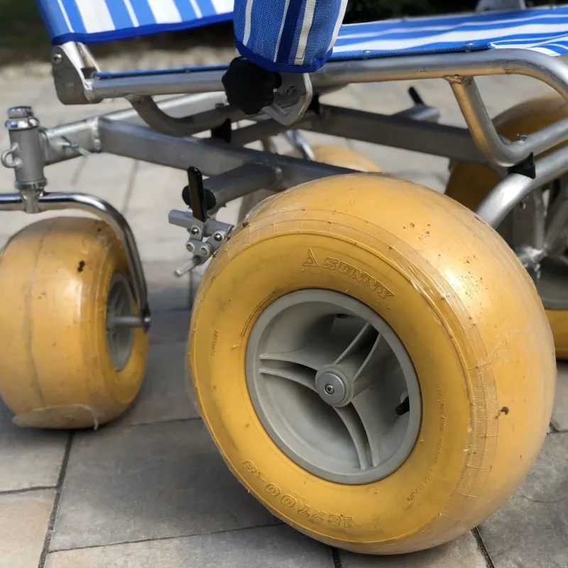 - Wheel Design: Standard wheelchair wheels sink into soft sand, making movement difficult or impossible.