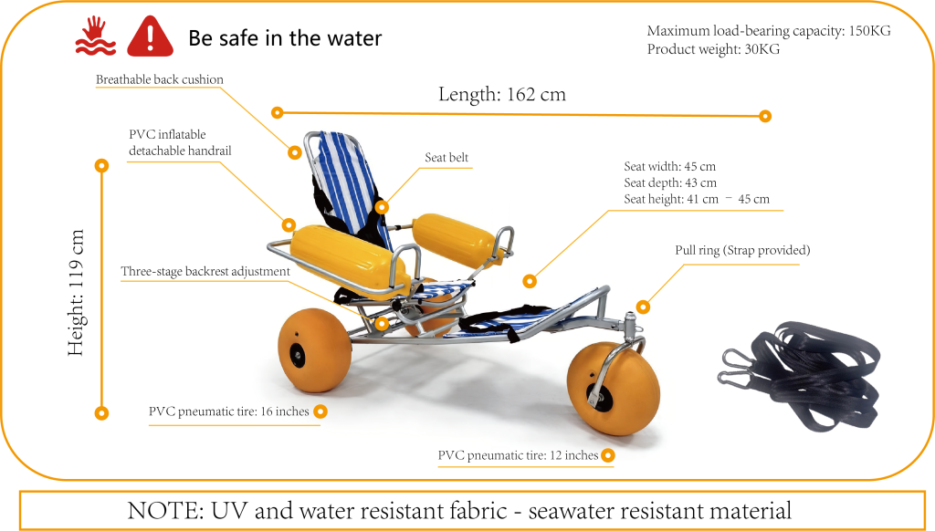 - Safety Features: For floating models, in particular, safety is paramount. Ensure the chair has robust safety harnesses and has been tested for stability in various water conditions. A chair with CE certification and ISO 13485 compliance demonstrates a commitment to safety and quality.