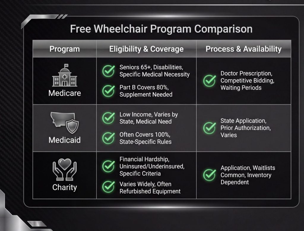 Key Takeaway: Medicaid is the most common way to get a completely free wheelchair if you meet the strict income and asset requirements of your state.