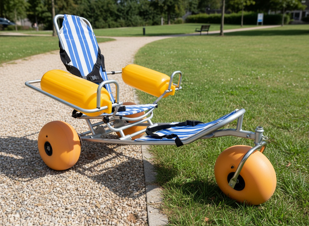 An Ary Floating Beach Wheelchair glides effortlessly over soft sand, fine gravel, and grassy parklands without digging into the terrain. Standard narrow wheels often fail in these environments, but these oversized balloon tires create a massive contact patch for weight distribution. This versatility permits the exploration of remote beach sections where traditional wooden boardwalks might end abruptly.