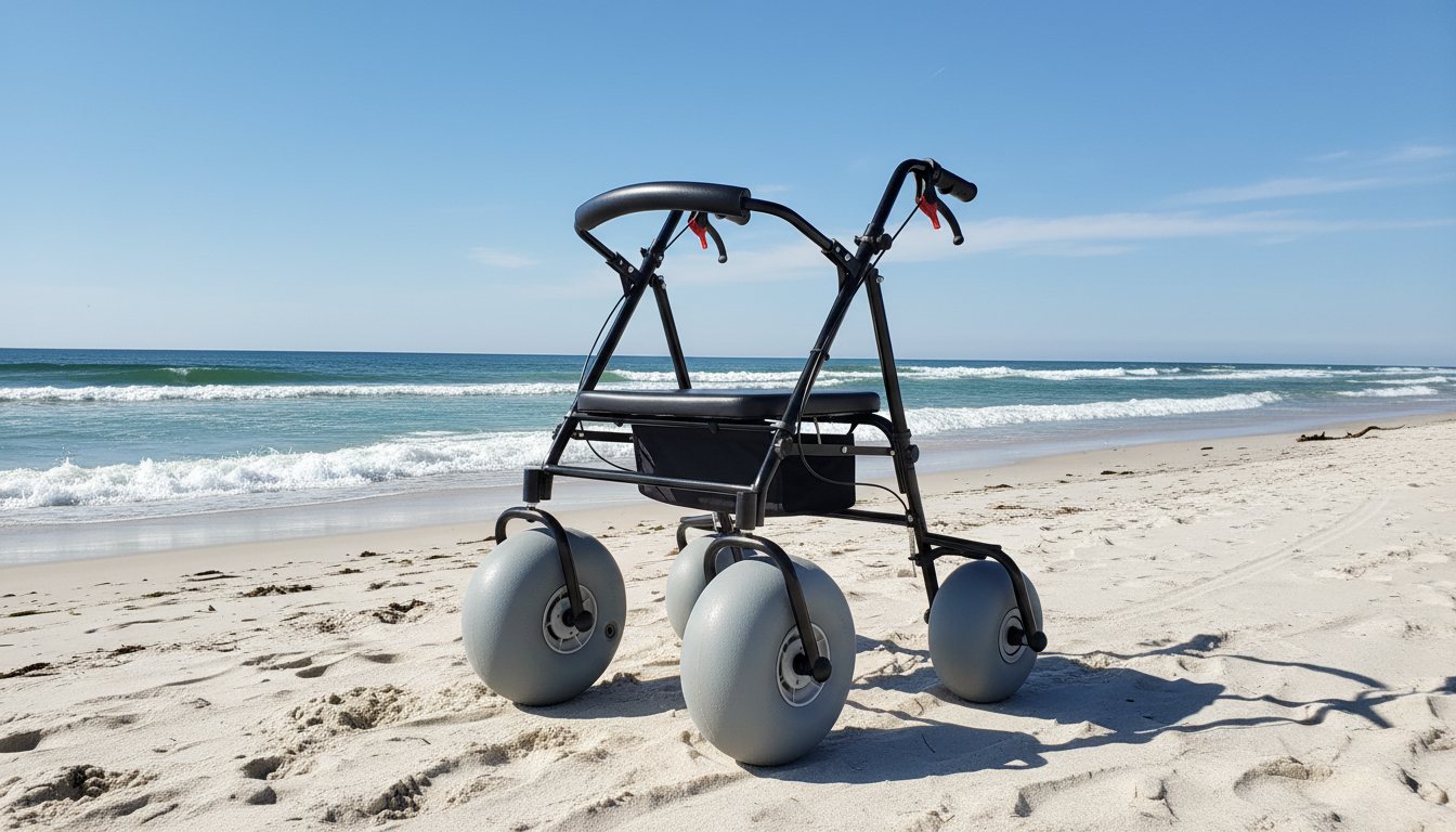 Now, flip the script to the hardware heroes. Beach walkers with balloon wheels? They’re not your grandma’s walker—they’re rugged, all-terrain wonders built for dunes and drifts. These mobility aids for beach conquer what once sidelined folks: the unforgiving sink of loose sand. Imagine rolling smoothly over waves of terrain, empowering accessible beach activities for those with limited mobility.